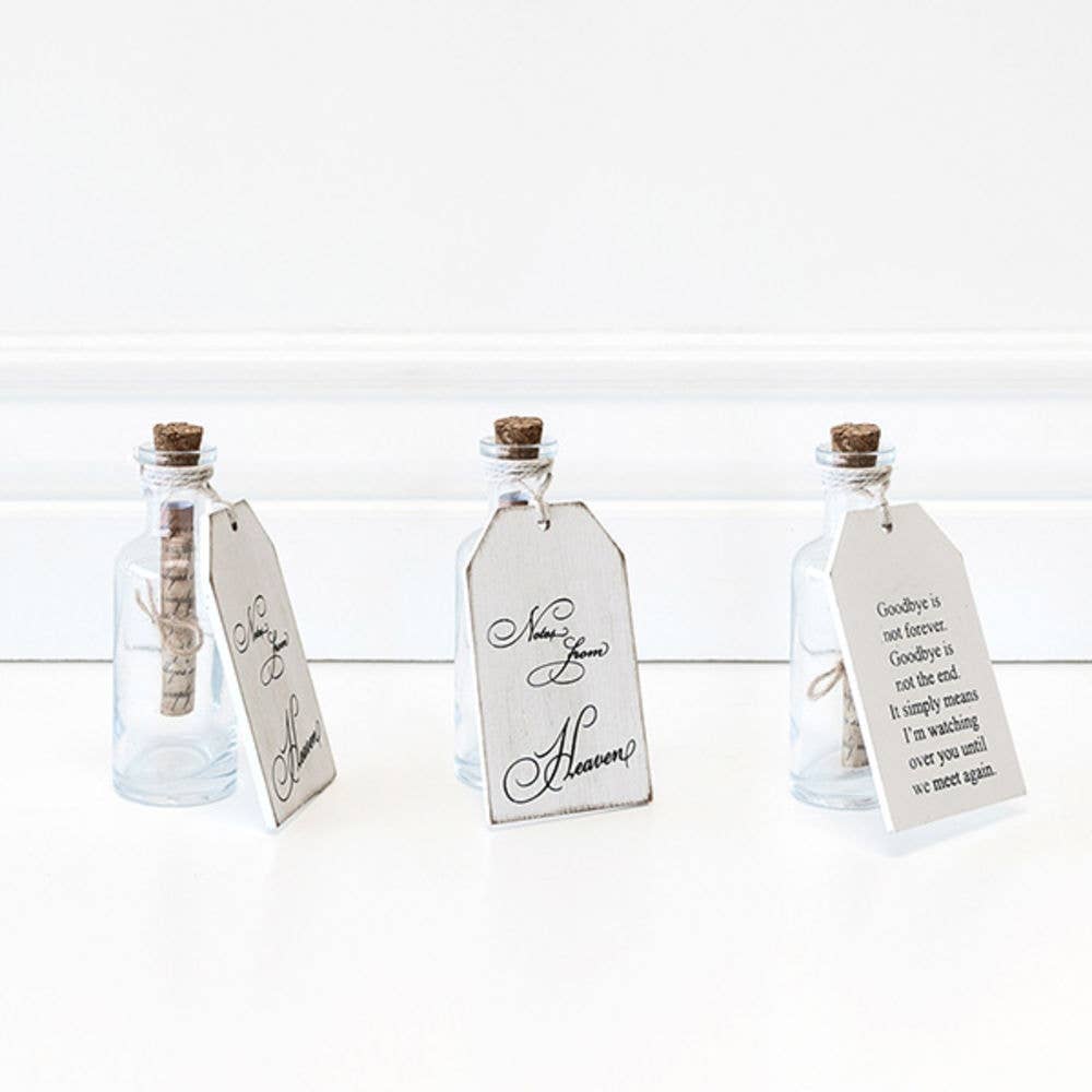 With Adams & Co as your partner, you can choose from a variety of home improvement decorations that will add quality and character to every corner of your home or office. One of Adam's ingenious works-of-art is this wood tag with a container (Product Number 1599) which boldly displays "Notes From Heaven" on one side and "Goodbye Is Not Forever. Goodbye Is Not The End. It Simply Means I'm Watching Over You Until We Meet Again." on the other, both in distressed black and white colors. This wood tag has dimensions of 2" x 3" x .25". From traditional to seasonal home accents, we are committed to provide you the right ambience every day throughout the year.