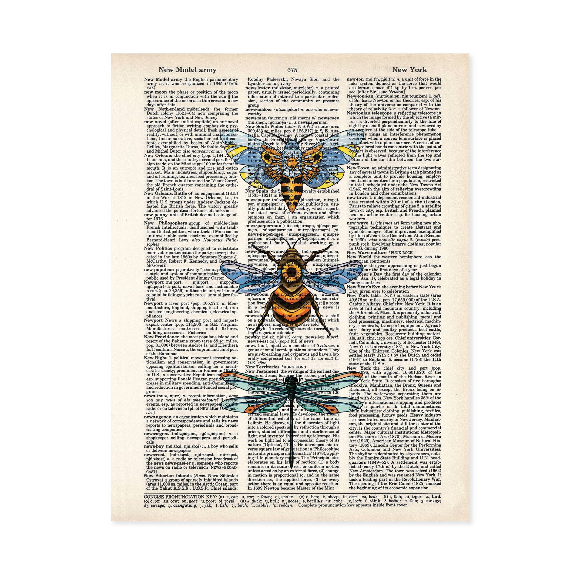 Bugs Sweet Moth Bee and Dragonfly Dictionary Page Art