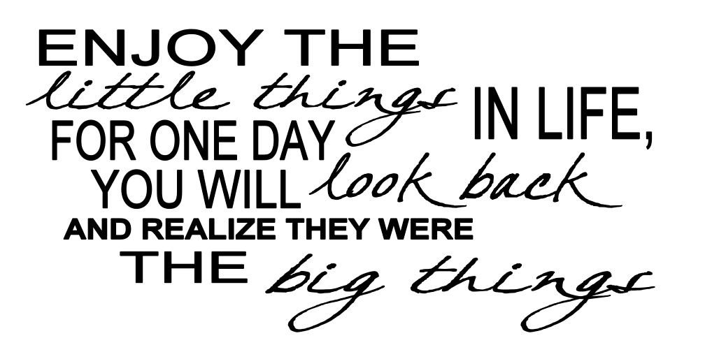 ENJOY THE LITTLE THINGS IN LIFE, FOR ONE DAY YOU WILL LOOK BACK AND REALIZE THEY WERE THE BIG THINGS