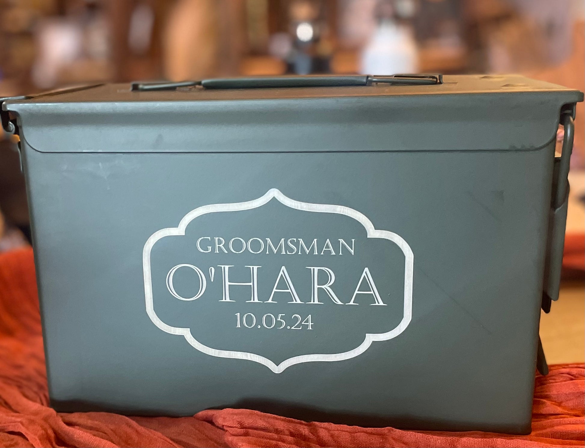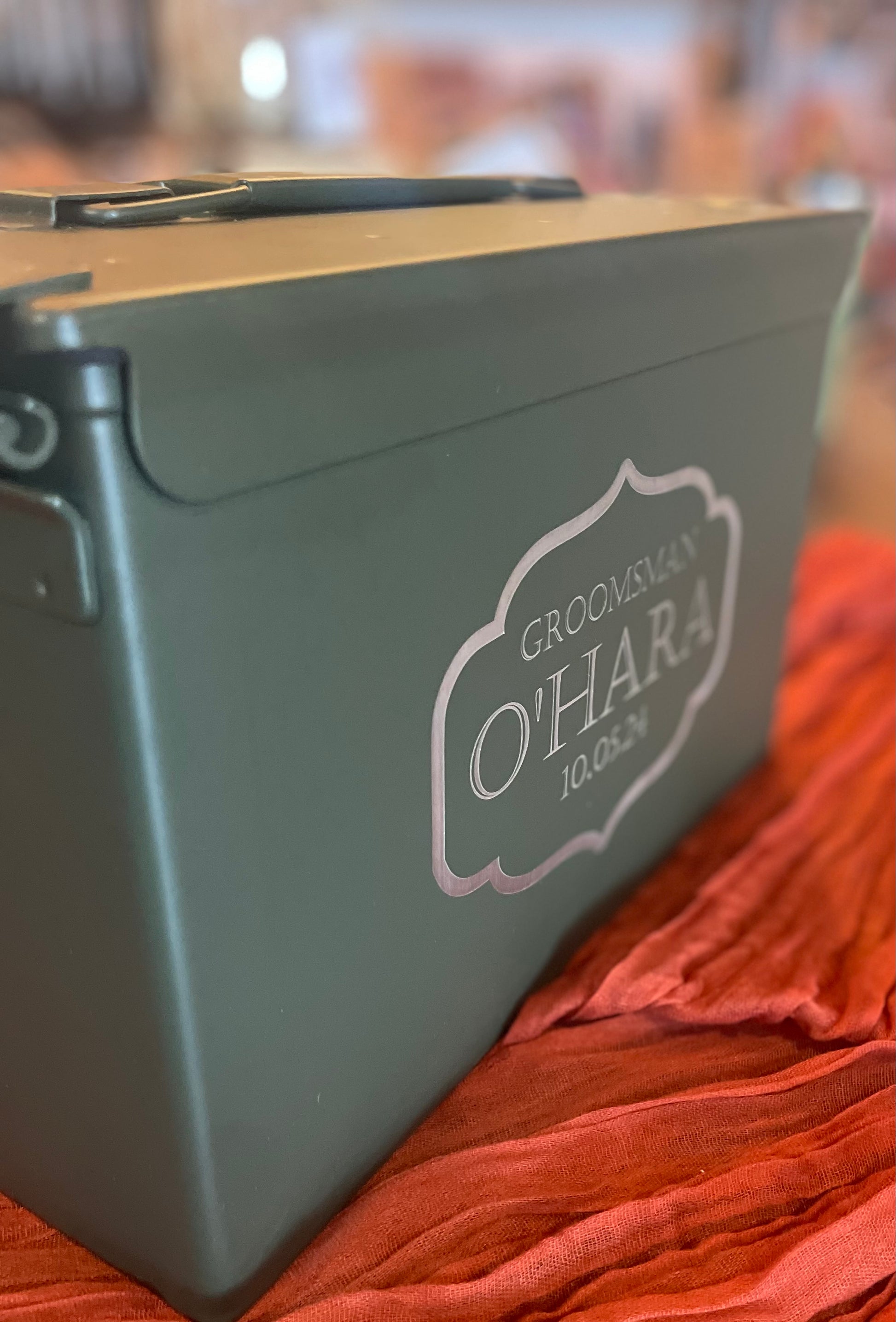 Your wing-man deserves a top gift, give him a keepsake he deserves with this personalized ammo box. Engraved with the design of your choice this authentic bullet box makes a handsome gift for any special occasion such as groomsmen gifts, best man proposal gifts, birthday gifts for men, or Father's Day. An excellent Christmas gift for your military friends & family.