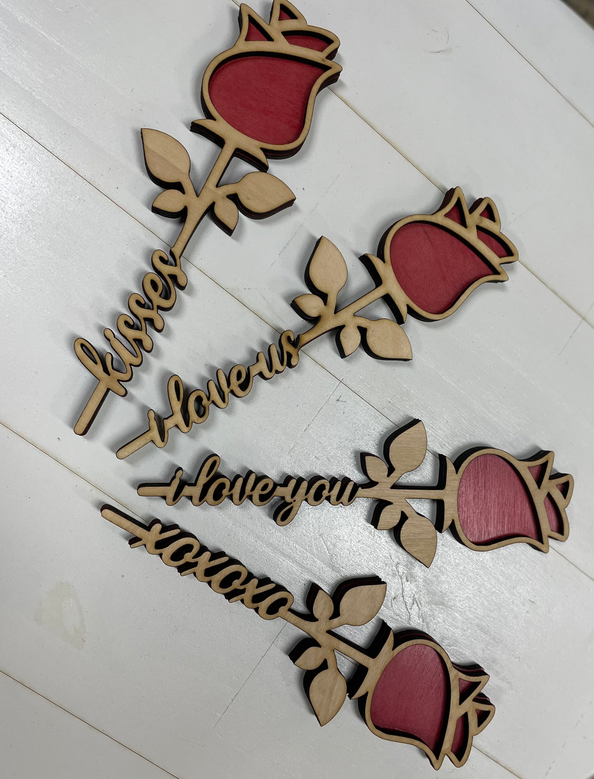 This is an 8" wood rose with each stem having a different saying. This is an absolutely perfect gift for Valentine's Day, Mother's Day, Anniversary or just because.